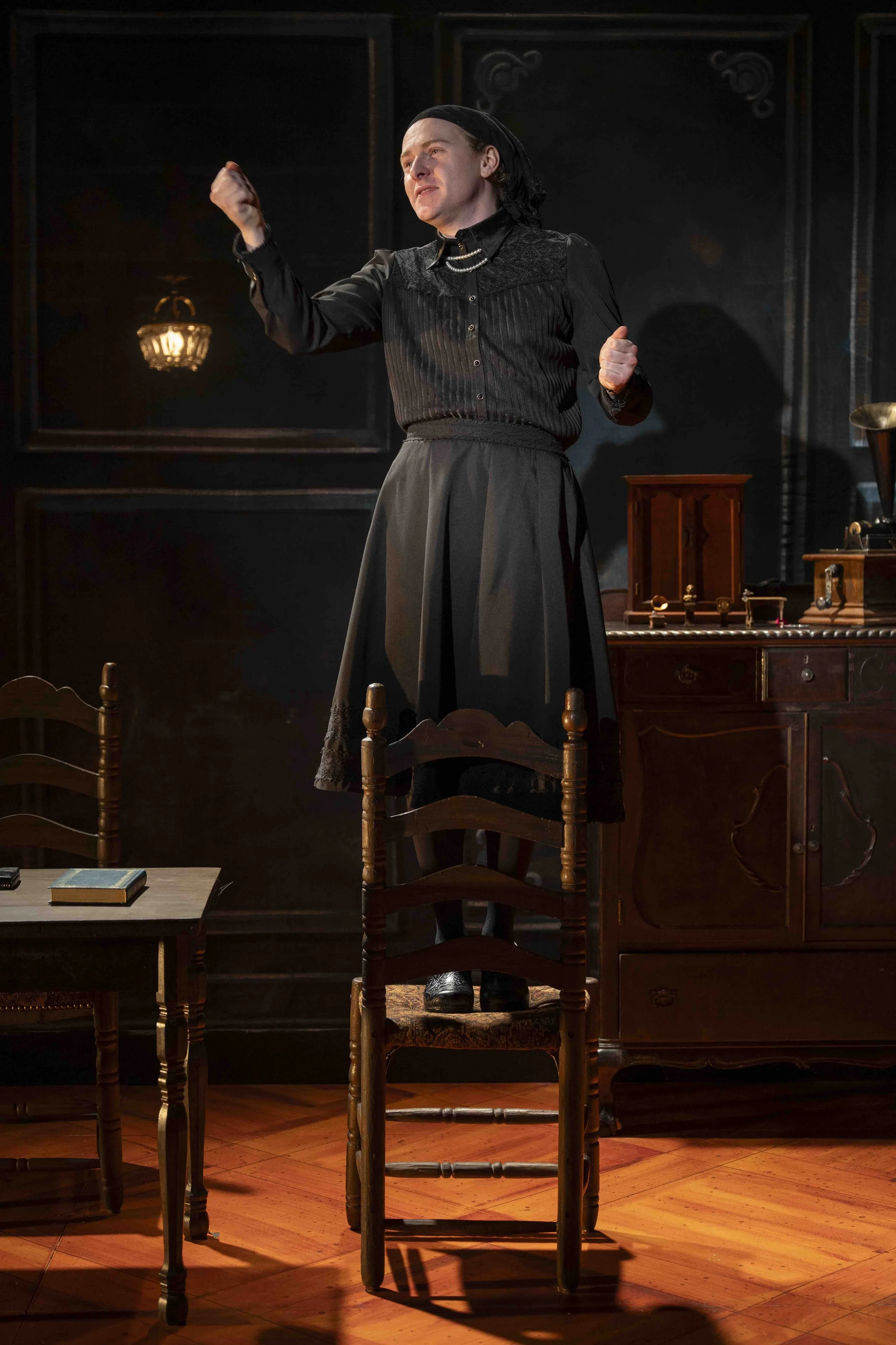 There is no surprise here why playwright Doug Wright received a Pulitzer Prize for Drama [2004] for this work of art. As Alexander Coddington thoughtfully directed this one-person performance, you discover the intimacy of interpretation and the subtlety of existing on the periphery of a society that mocks anything authentic. It is in the slight repositioning of the furniture [Charlotte and her furniture], the caressing of small artifacts [to hold a bit of history in the palm of your hand], and the secret bar in the basement [on stage, a glass wall, a preserved scene just like in any museum]. However, it is the undressing on stage to the satin [or was it silk?] slip that did it for me. The vulnerability that is Charlotte, that is Jonathan, that is the body, that becomes a question of access, of denial, of performance, of practice, of potrail. . . we watched. We watched as she/they/them [all of them] stripped themselves of the ensembles that are often used to define roles, gender, and status in society. A patterned dress, a modest black skirt with a matching blouse and headscarf, a bold red coat, and the prisoner's sweater. And then again, we watched as they dressed themselves. In this garb, to be seen as this being, as if what we saw underneath had changed [Had it changed?].