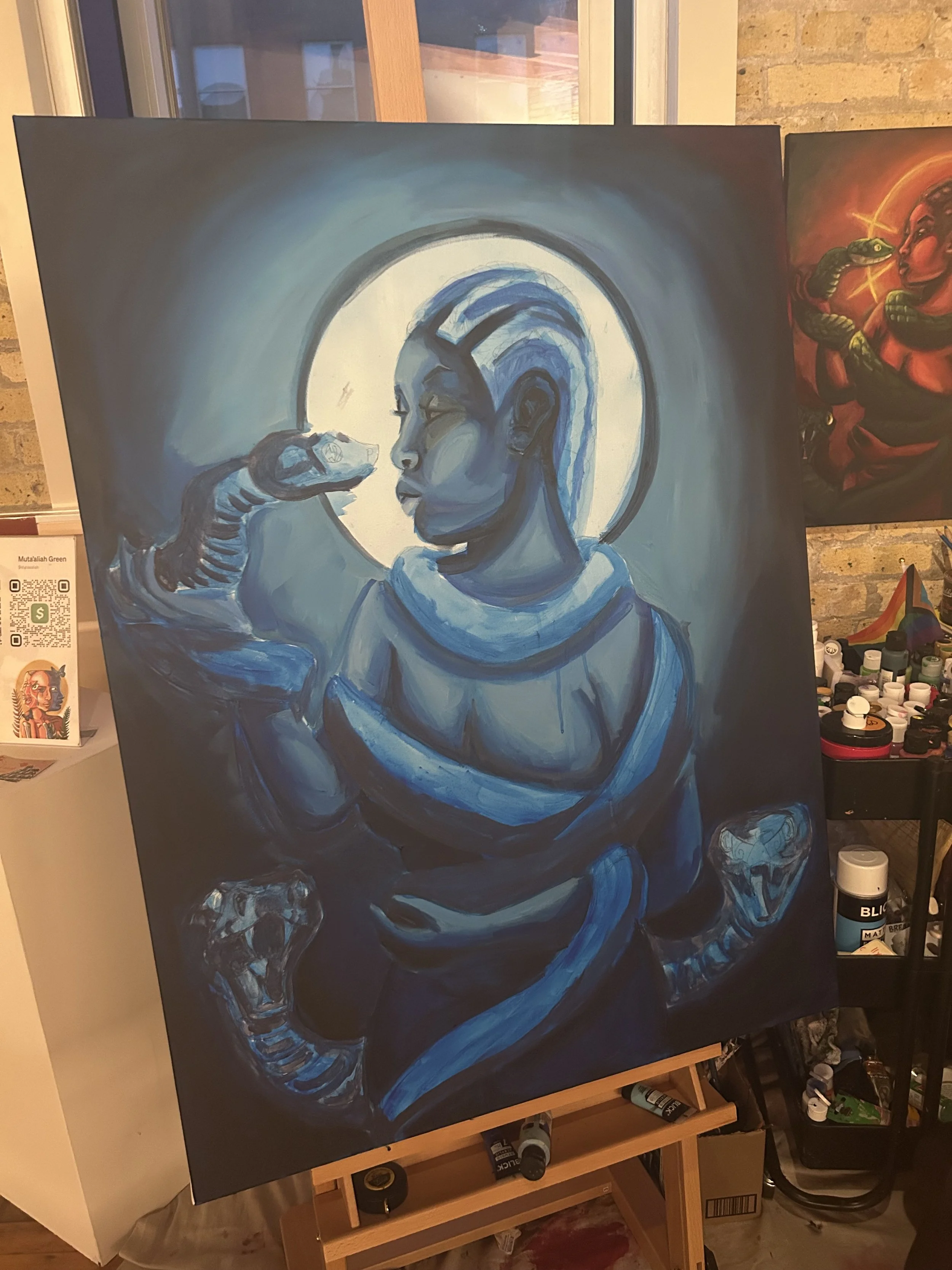 The visual artist’s ultimate goal is to execute their vision of being able to live life the way they would like. Making a sustainable income off of the value of their artistry and becoming a part of the movement for Milwaukee art is the wind that keeps Muta’aliah going. Most importantly, everyday people are learning to face their trauma and navigate life even after the darkness by witnessing Muta create in the moment or their finalized portfolio, which is the overarching message of Muta’s gallery.