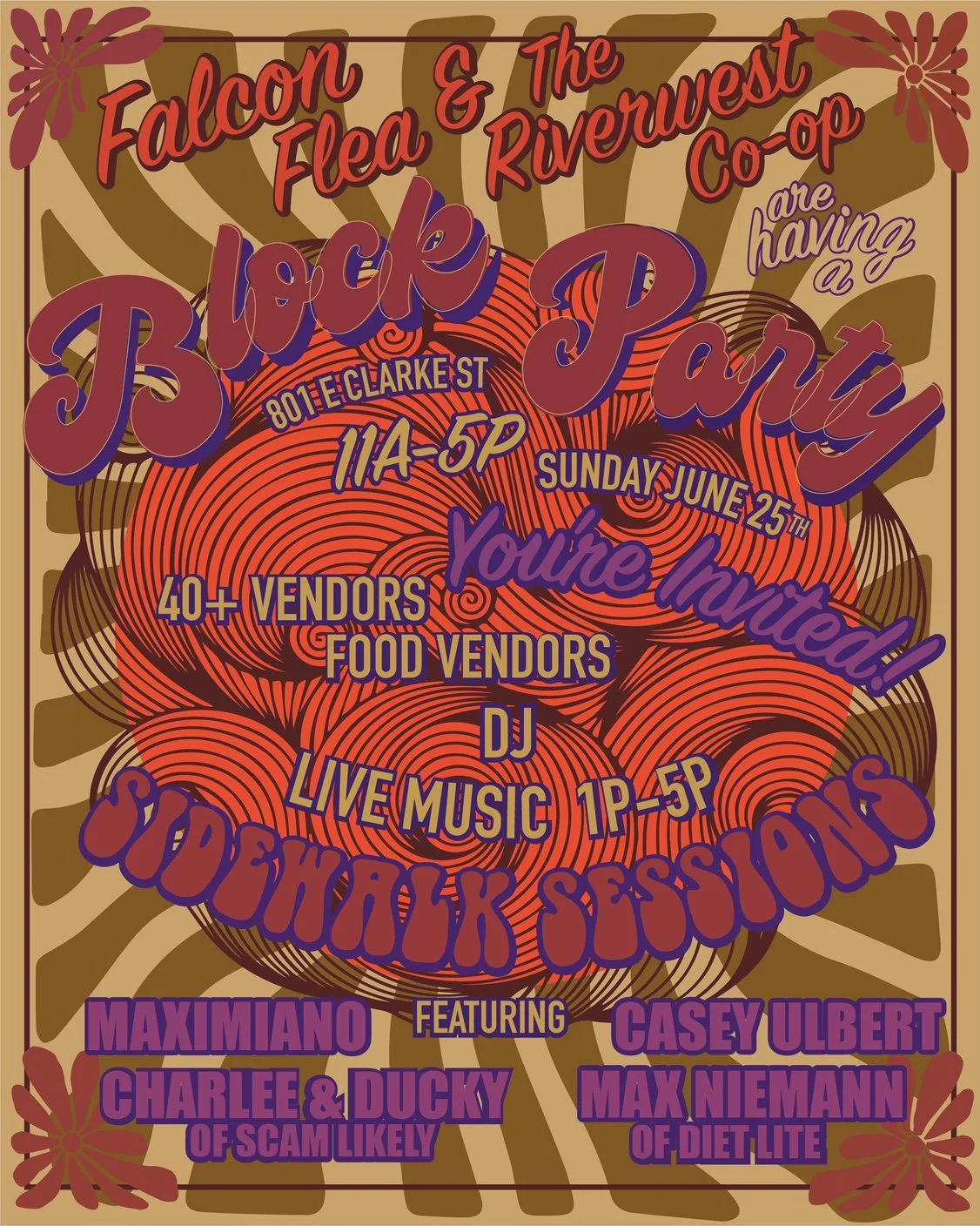The Block Party will take place on Fratney St at the intersection with Clarke St, between the Riverwest Co-op and the Polish Falcon from 11am-5pm. Admission is free. For more information follow us on Instagram @FalconFleaMKE, on facebook at Falcon Flea MKE or email the Falcon Flea at falconflea@gmail.com.